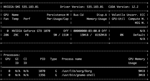 The output confirms I have a NVIDIA GeForce GTX 1070.